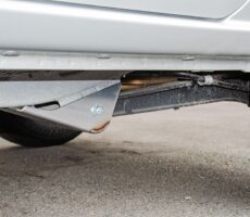 全方向にスキッドするステンレス製3mm厚の丈夫なガード。トランスファ―ガード装着後は最低地上高も向上。
