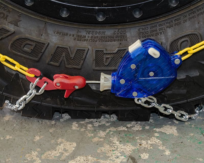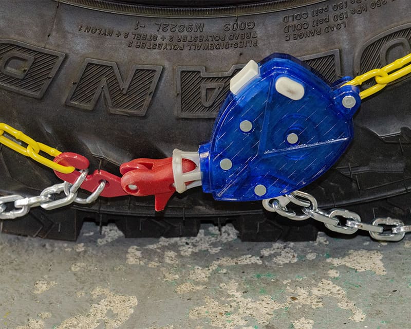 これまでも自動で締め付けるアジャスターはありましたが、故障や氷結、締め付けが弱いなどの問題を抱えていました。そこでinstaGOは運転手の安全を最優先に考え抜いた優秀なアジャスターを開発し、特許を取得(特許第6587757号)、取付初期に緩みが生じていても走行することで自動的にサイドチェーンを締め付け、緩みやチェーン切れを解消します。