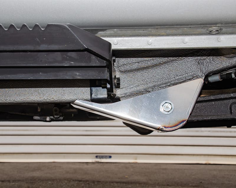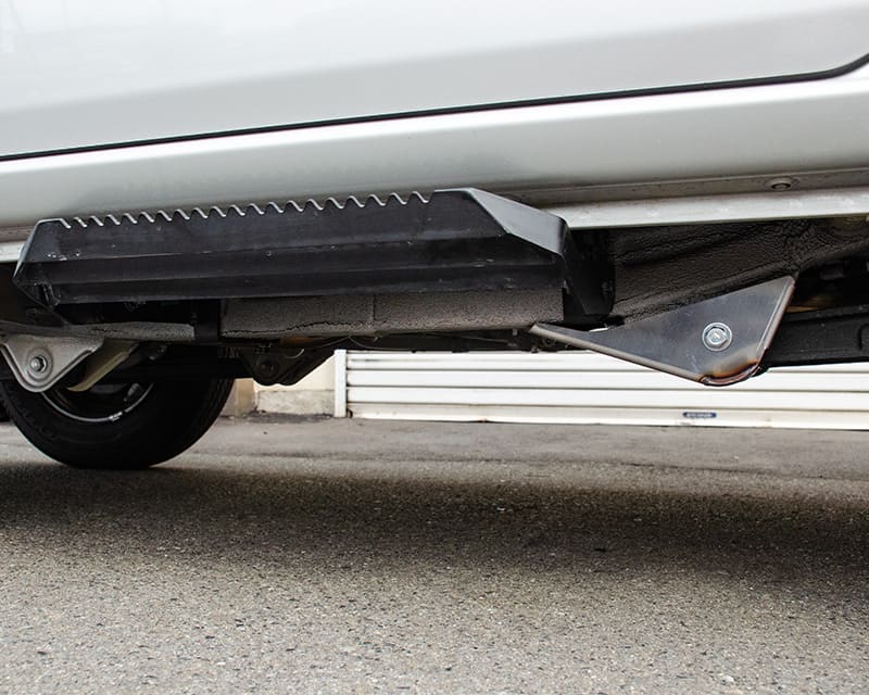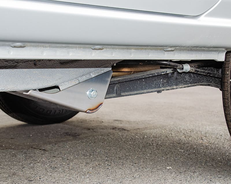 リア・トレーリングアームのピポット部用スキッドガード。スキッド性能抜群。装着後もグランドクリアランスの悪化なし。