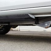 ●スキッドすることを前提に設計したガードの材質は、酷使に耐える硬く錆びにくいステンレス製3mm厚。取付はボルトオン。アーム取付ボルトと共締め。